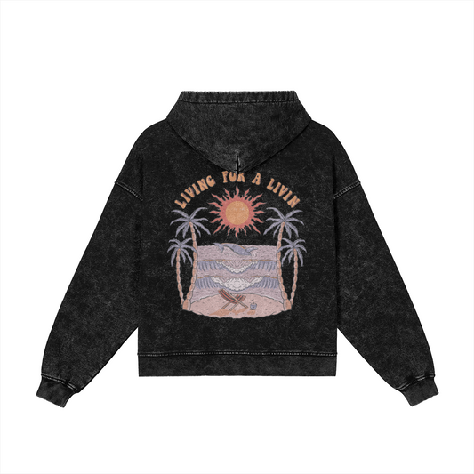 L4L Unisex Vintage Snow Wash Full-zip Hoodie